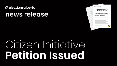 EDMONTON – Today, Alberta’s Chief Electoral Officer, Gordon McClure, issued the petition for the “Alberta Funds Public Schools” citizen initiative. Prior to issuing the petition, the Chief Electoral Officer received, and is satisfied with, the...