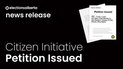 EDMONTON – Today, Alberta’s Chief Electoral Officer, Gordon McClure, issued the citizen initiative petition for the legislative proposal “No New Coal Mining in the Eastern Slopes of the Rocky Mountains.” Prior to issuing the petition,...