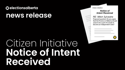 EDMONTON – Alberta’s Chief Electoral Officer, Gordon McClure, has received a notice of intent to apply for the issuance of a citizen initiative petition for a constitutional referendum proposal. The notice of intent was filed by Mitch Sylvestre on December 11, 2025, and meets the requirements of the Citizen Initiative Act section 1.1. Written notice, as required in s.1.1(5), was provided to the elector on December 12, 2025. Notice of Intent for a Citizen Initiative…