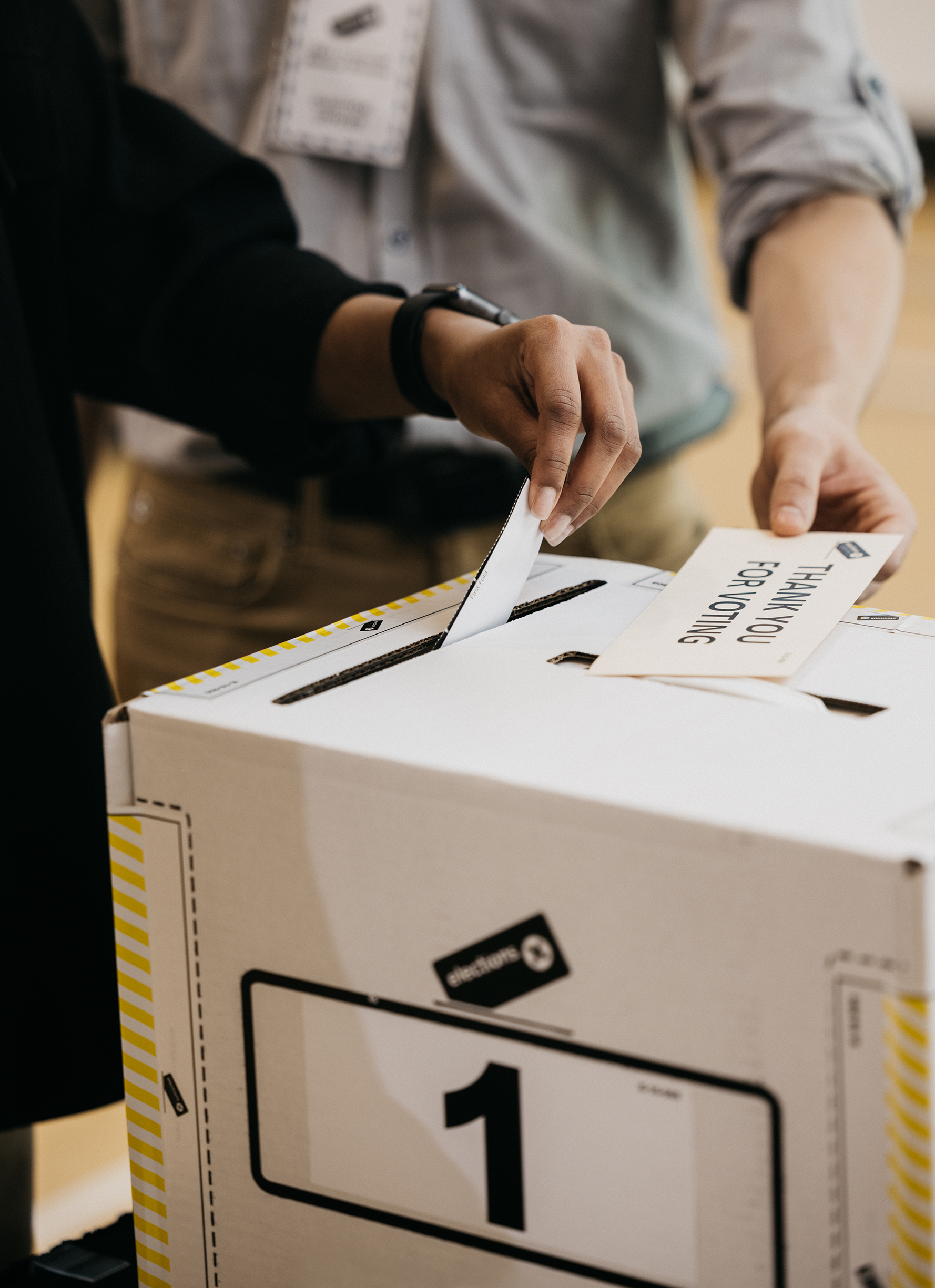 Refold your ballot and take it to the ballot box station. The election officer will help you cast your vote.